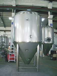 我廠設計的發(fā)酵罐為標準式罐型,這種罐型當公稱容積在6m以下時罐采用夾套式。發(fā)酵氣的冷卻或加熱,均由夾套來完成。公稱容積為6m以上時,發(fā)酵氣的冷卻由立式盤管來擔負,在罐內盤管的連接方面我們作了改進。這主要避免在罐體上多開孔,開成死角。這種連續(xù)方式在實際使用中得到滿意的效果。